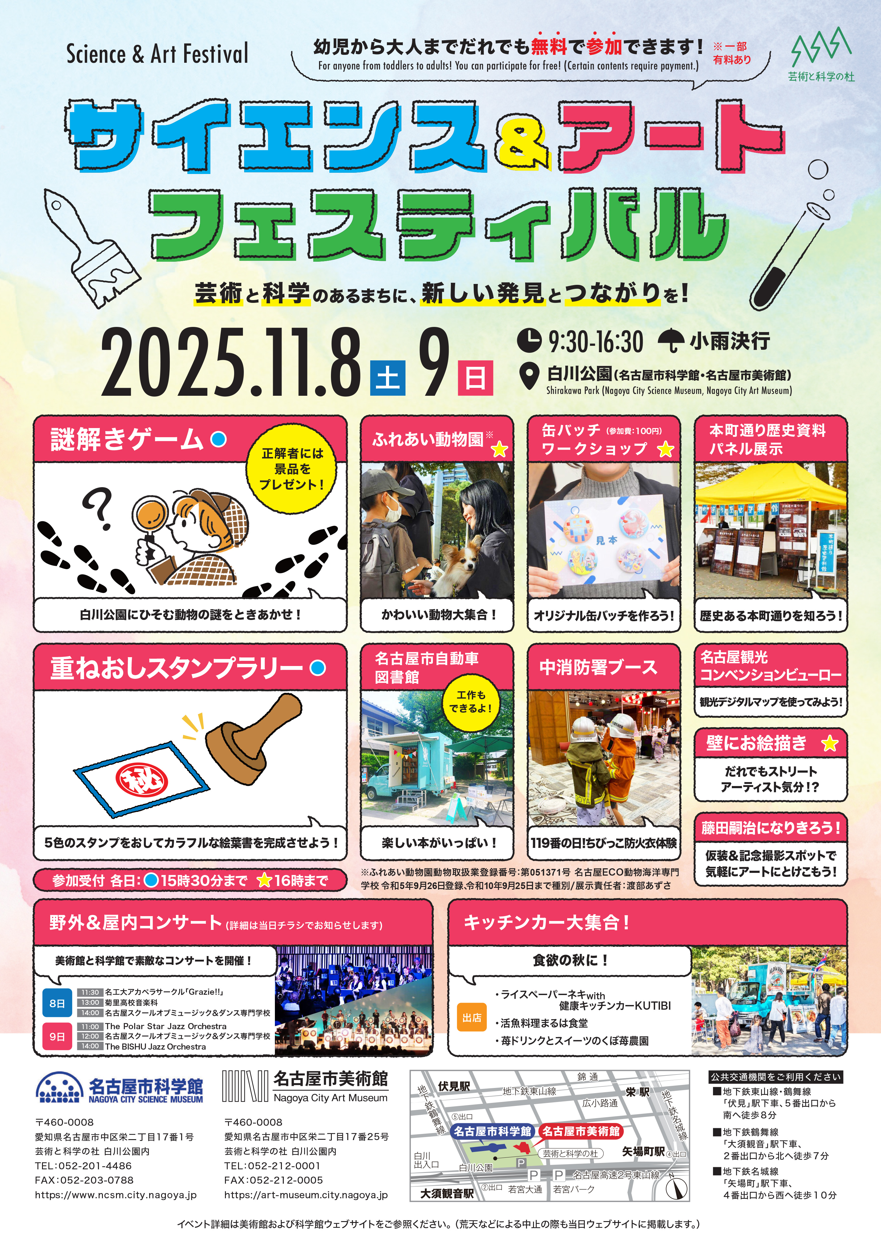 事業の一環として、今年も新しい企画が盛りだくさんの「サイエンス&アートフェスティバル」を開催いたします。