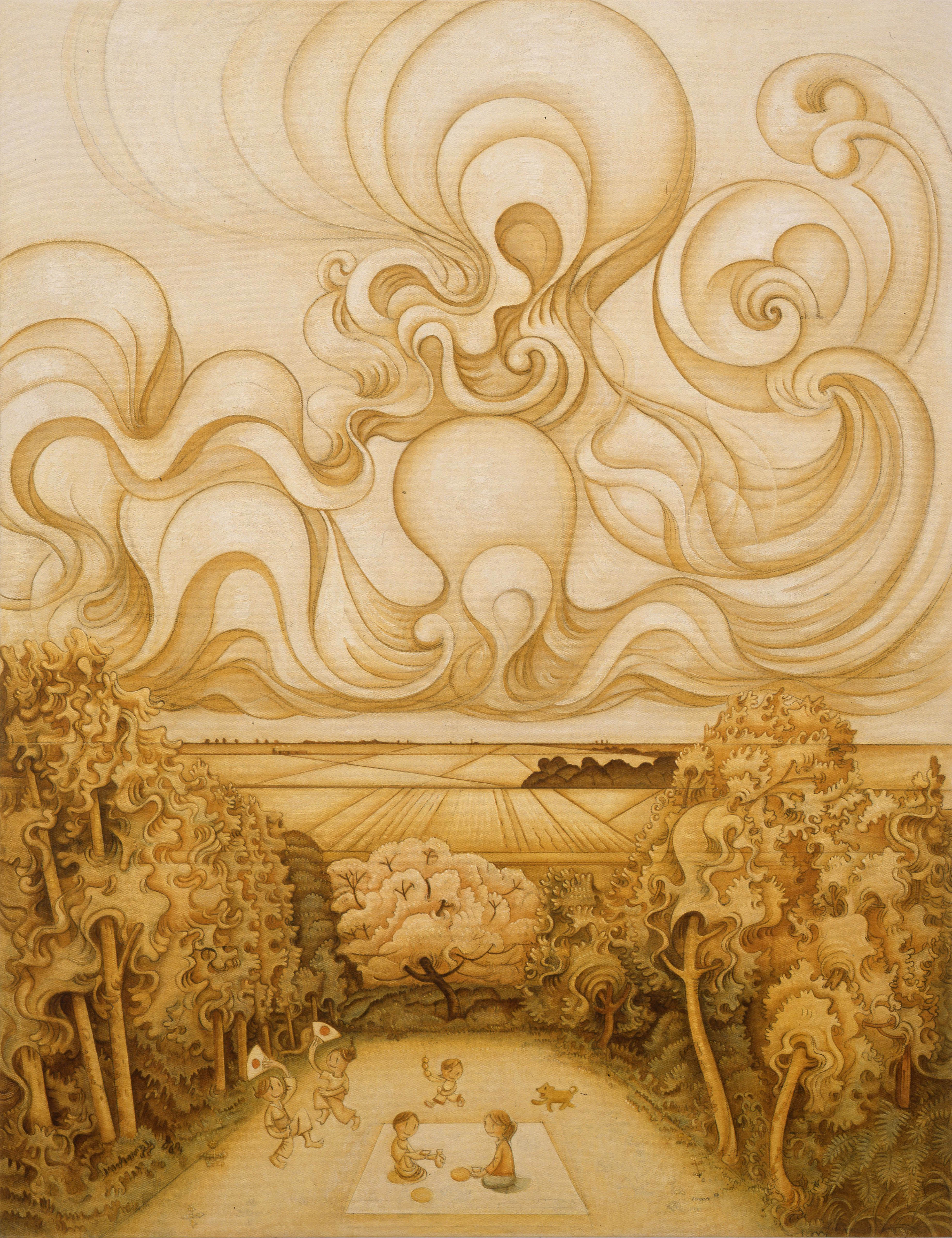 1990年代以降は、新たな表現の模索のためドローイングを繰り返し、中国絵画の筆法から「線」の要素を取り入れていきます。またルネサンス以降のヨーロッパ絵画の主題と構図に着目し、静けさとダイナミズムを併せ持つ表現と寓話的画題へ変貌を遂げました。2005年からは名古屋芸術大学教授を務め、絵画論の講義を担当するなど、理論と実技指導の両面から後進の育成にあたっています。