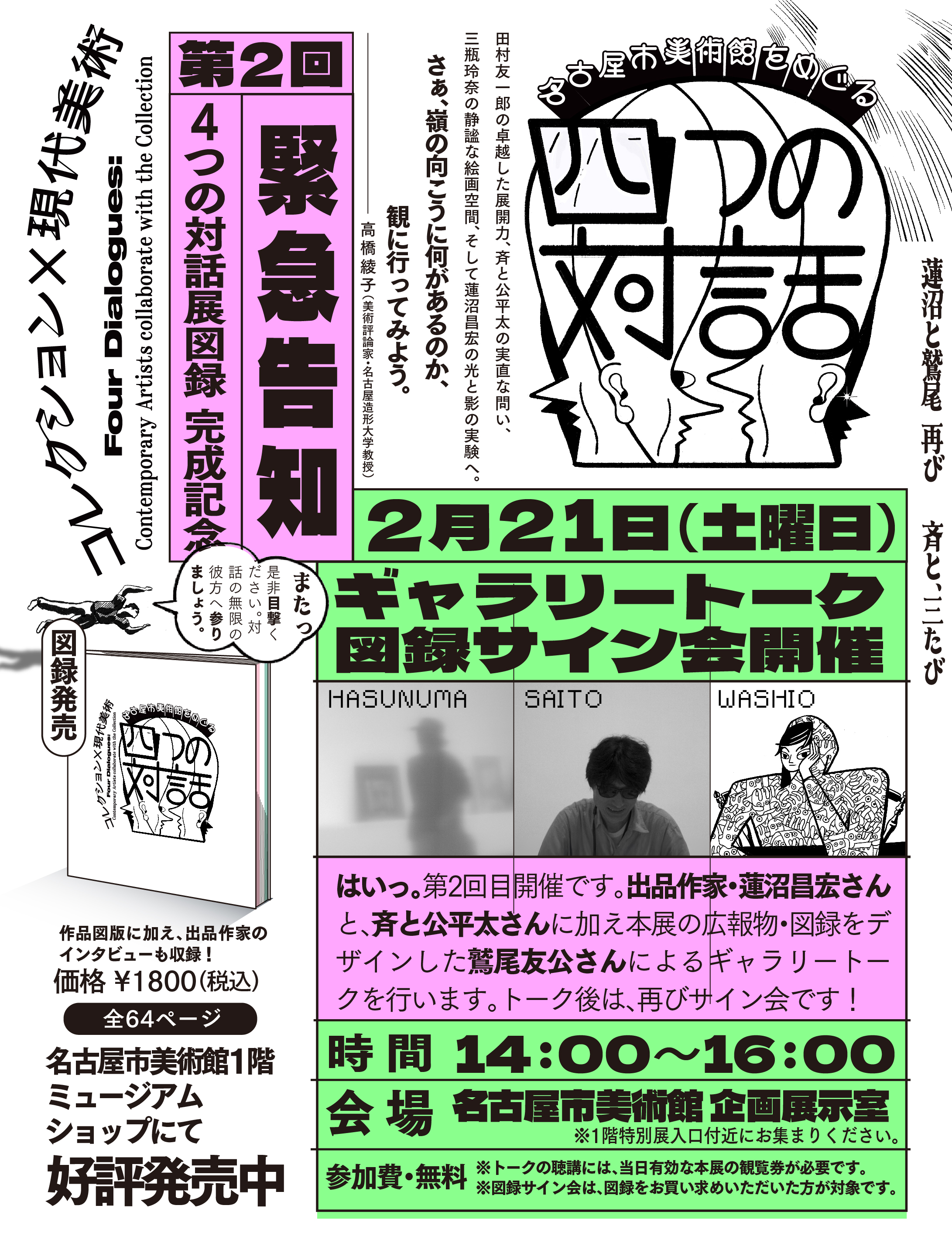 【2月21日(土)第2弾】4つの対話展 ギャラリートーク+図録サイン会 開催! 2026年02月15日(日曜日) 斉と公平太さん・蓮沼昌宏さんと、本展の広報物・図録をデザインした鷲尾友公さんによるギャラリートークを行います。トーク後は3人の図録サイン会を開催! 詳しくはこちら お知らせ一覧